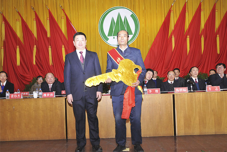 “從伐木勞模到育林英雄,27年的無私奉獻,綠了荒山,白了頭發;清了溪水,駝了脊背。汗水、淚水和苦水相偎依,誓言因此崇高而莊嚴。您是吉林森工的一面旗幟,大山深處的一座路標。”1月28日,在吉林森工紅石林業局的職工代表大會上,趙希海獲得了年度特別貢獻獎,給他的獎勵是局址地區一套53平方米的新房。