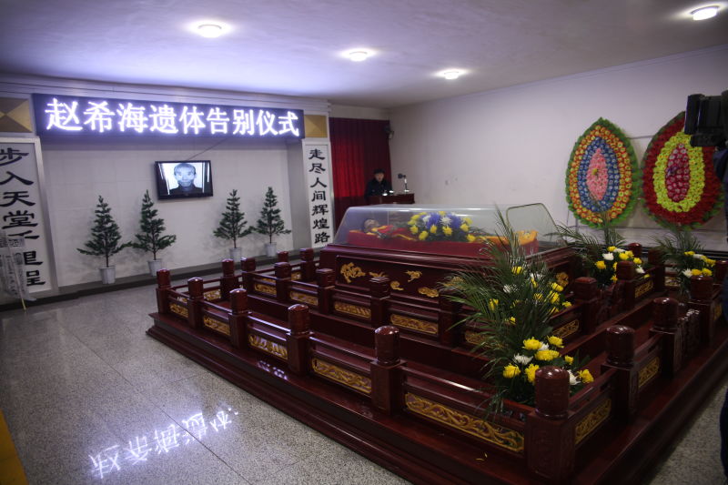 3月12日早6時30分,趙希海的遺體告別儀式在樺甸市殯儀館舉行。吉林省紅石林業局副局級以上領導、機關各部室領導、基層單位黨政負責人、員工代表以及趙希海生前的親友200余人參加了告別儀式。