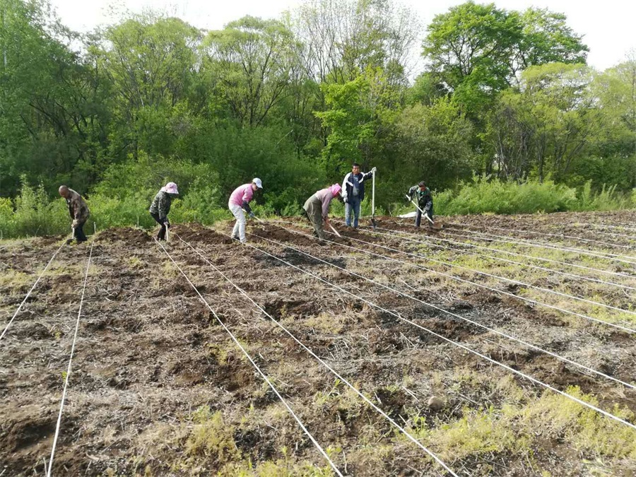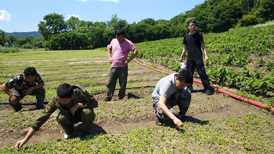 返魂草發芽比其他的草要早些季節,不能噴灑除草劑,必須手工拔草。在修正藥業技術員的指導下,他們全員上陣,大家彎腰伏在田間,認真的清理雜草。腰酸了,腿麻了,一干就是大半天。